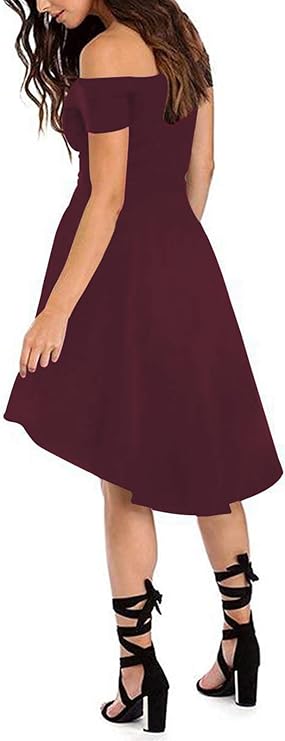 Off The Shoulder Short Sleeve High Low Cocktail Skater Dress