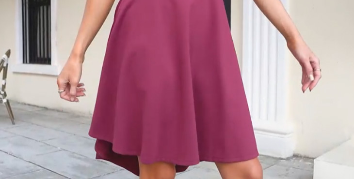 Sarin Mathews offers a breathable, soft, and stretchy cocktail dress with a unique high-low hem. Perfect for spring to autumn events, it ensures comfort and style for any occasion.